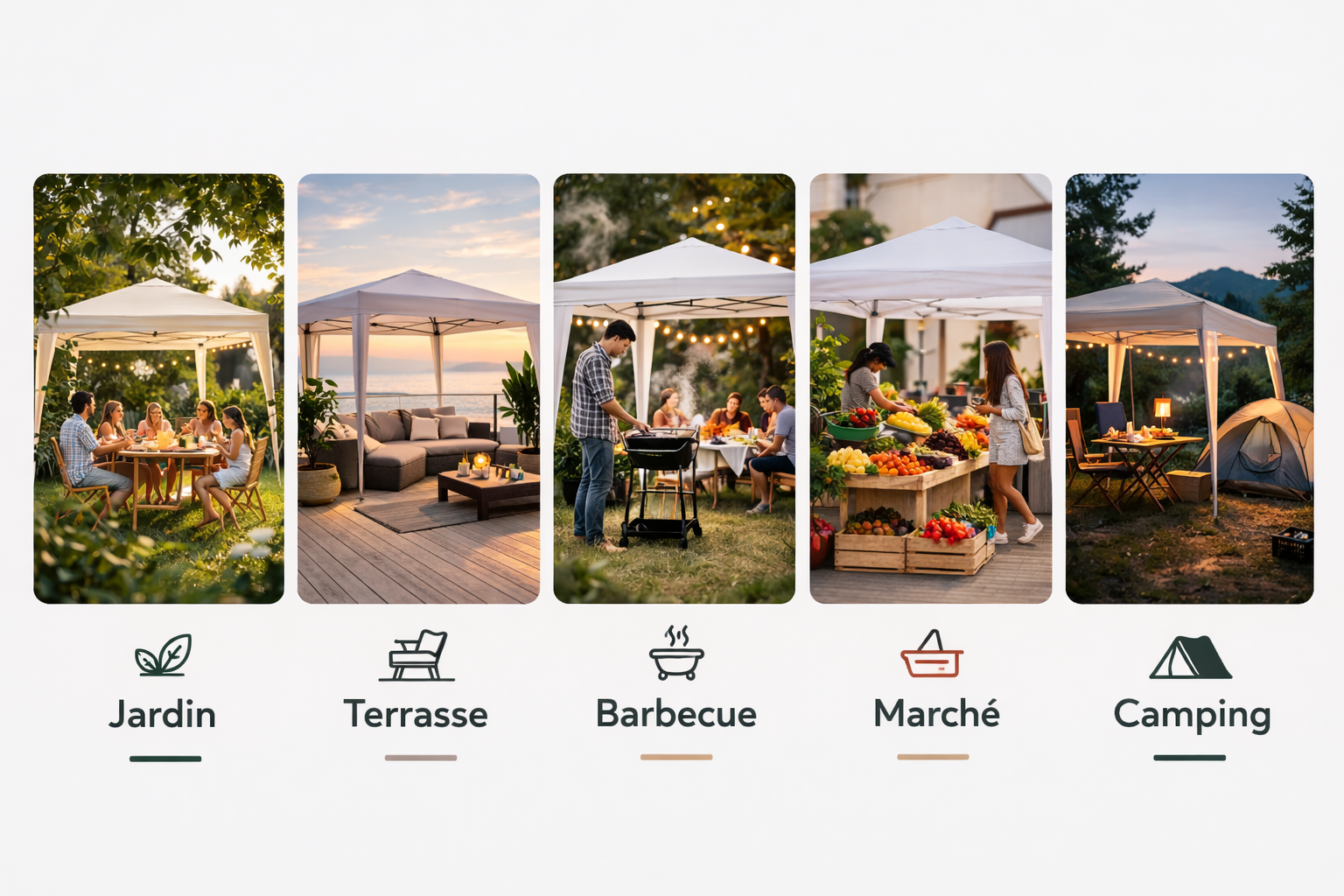 La tonnelle est idéale pour une utilisation lors d’événements, de repas en extérieur, sur une terrasse ou dans un jardin. Pour prolonger sa durée de vie, il est recommandé de la démonter ou de la ranger en cas de fortes intempéries.